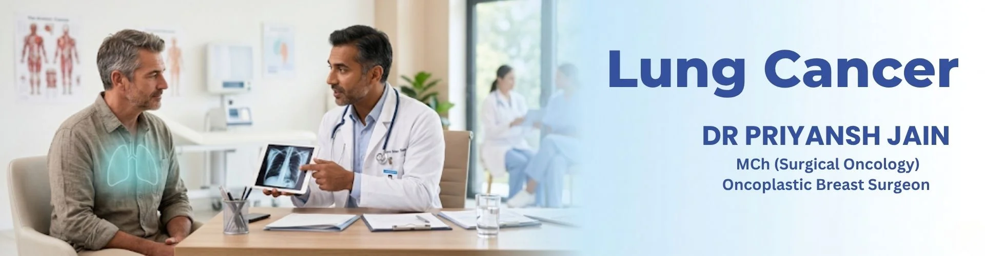 At Naman Cancer Clinic & Research Centre, patients receive comprehensive and advanced care under the guidance of Dr. Priyansh Jain. The clinic focuses on accurate diagnosis, personalized treatment plans, and the latest cancer therapies to ensure the best possible results for lung cancer patients.